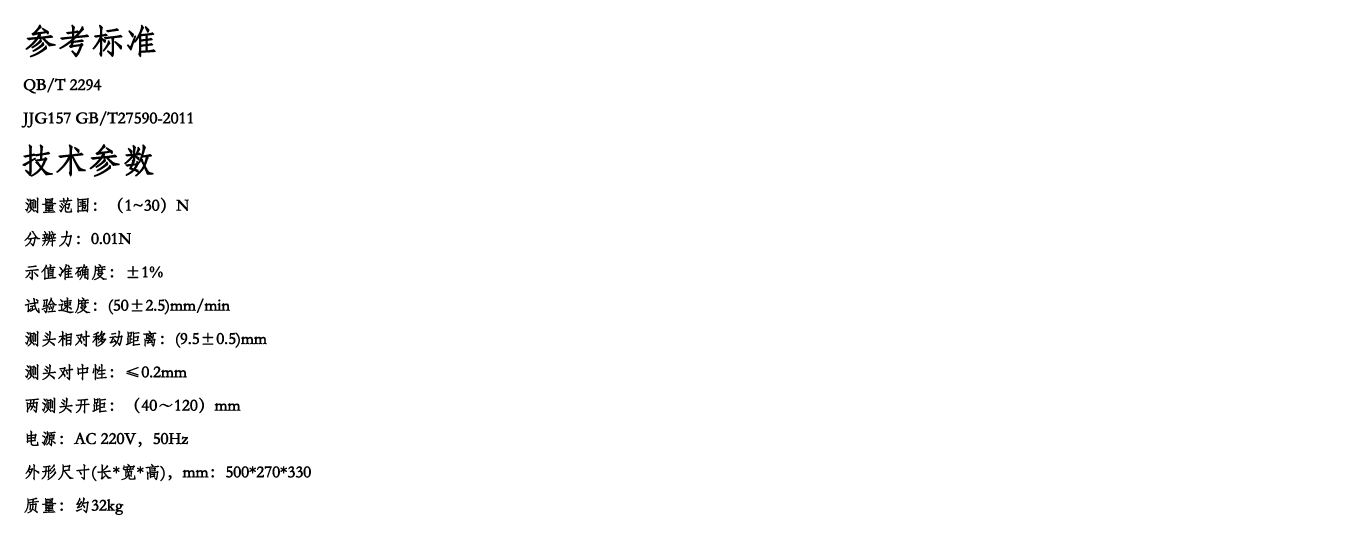 简介: 纸杯纸碗挺度测定仪适用于纸杯杯身及纸碗挺度的测定,是纸杯杯身及纸碗挺度检测的专用仪器,本仪器根据QB/T 2294《纸杯》标准对仪器的基本要求和JJG157《非金属拉力、压力和万能试验机》的通用技术要求设计,是纸杯生产厂和相关科研、质检部门必备的纸杯物理性能检测设备。仪器采用单片微机控制技术,配置铝合金面板,标准按钮灵敏耐用,液晶中文显示,具有测试数据记忆功能,高速热敏打印机打印输出,全自动完成测试,测头自动复位,具有测试数据统计处理功能。