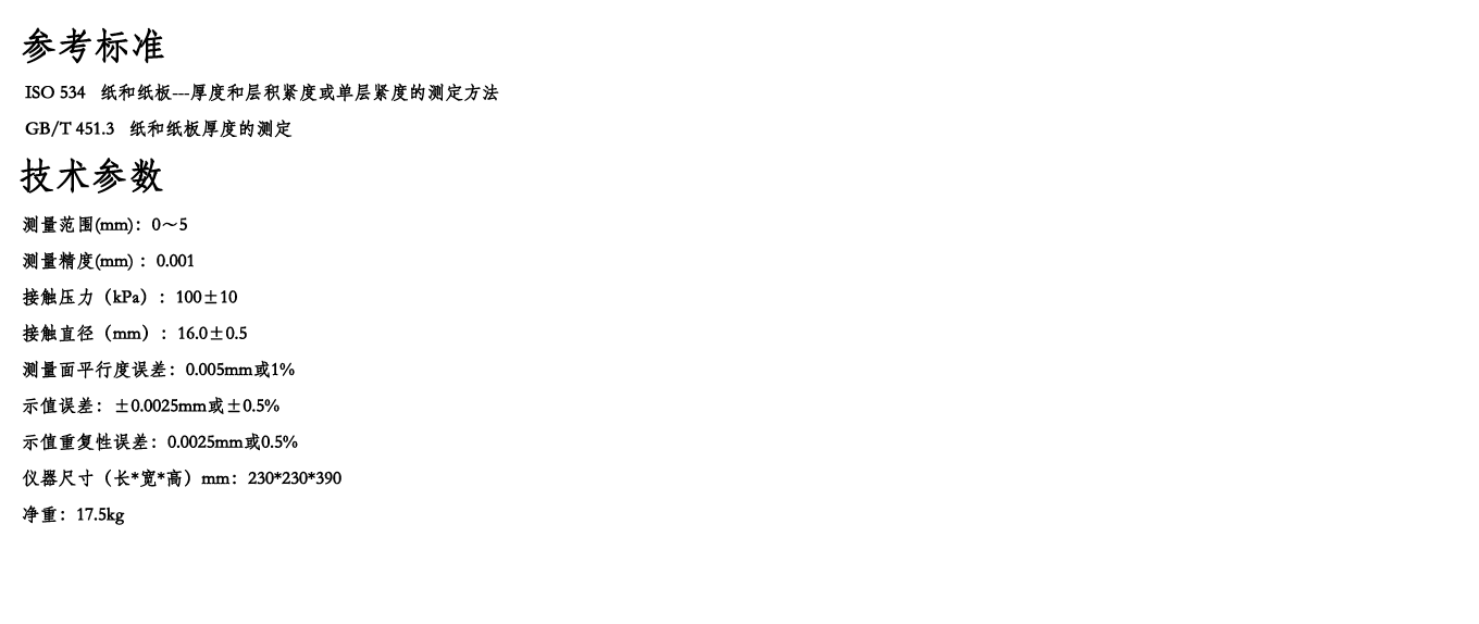 简介: 电动厚度仪是用来测量纸和纸板厚度的专用仪器。广泛适用于纸张、纸板及其他片状材料的厚度测定。该仪器是纸板,是纸板、纸箱生产、科研及商检等企业和部门不可缺少的常用仪器。