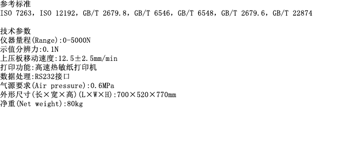 简介: 压缩强度测定仪配有触摸屏控制面板,可单点触摸操作,并通过图形显示测试结果。该仪器用于进行纸张环压强度(RCT)、瓦楞纸板粘合强度(PAT)、边压强度(ECT)、平压强度(FCT)、纸芯平压强度(CMT)和瓦楞原纸平压强度(CCT)等项目的测试。