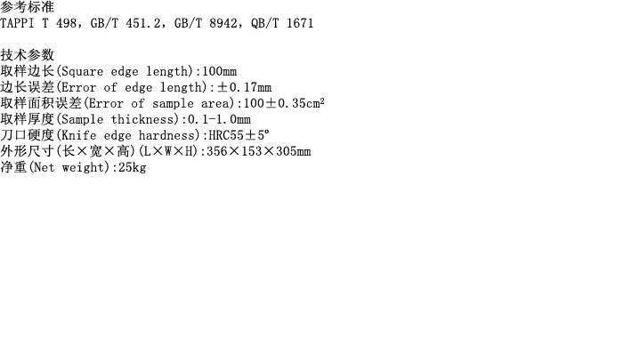 简介: 方型取样器可快速并准确地冲切10×10cm的样品,不会造成纸张和纸巾的变形和损坏,可同时用于定量或柔软度测定。