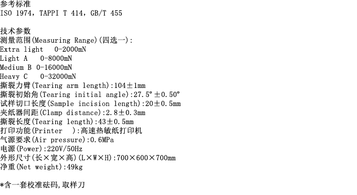 简介: 该电子撕裂电阻测试仪可通过触摸自动夹紧测试样品,并通过微处理器进行计算、校正、零点设置、摆锤释放等程序,同时在触摸屏上显示数值和相关曲线。这些测试结果可以打印,也可以通过RS 232通信端口直接传输到计算机。