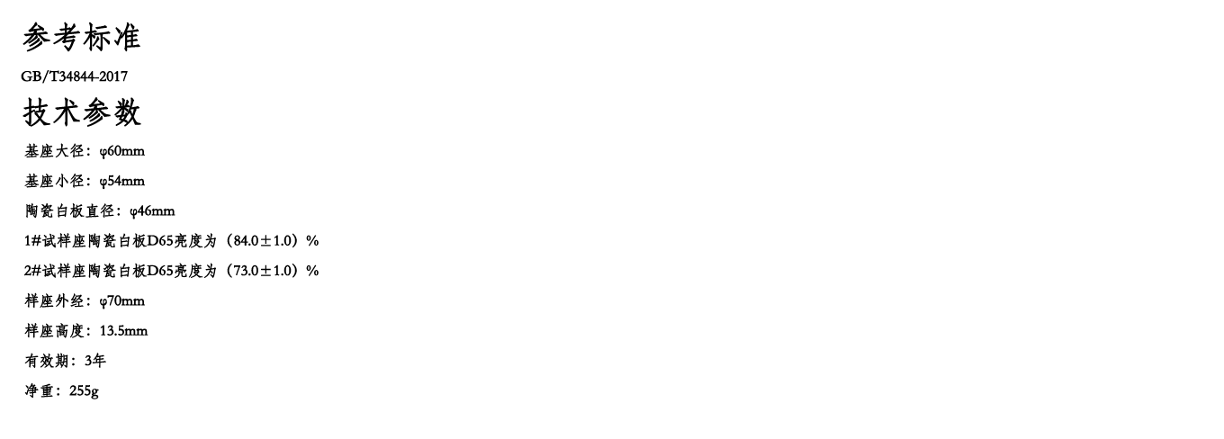 简介: 1#、2#试样座适用于壁纸褪色性、遮蔽性的测定,由试样底座和试样座环形盖组成。底座上内嵌有陶瓷白板,背部有与反射光度计试样托匹配的定位凹槽。环形盖上有一条定位线。