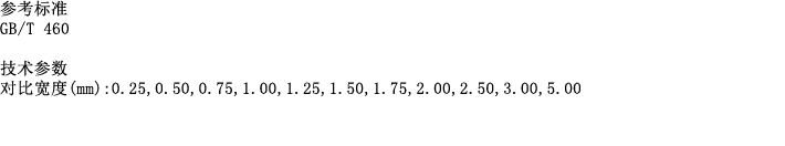 简介: 施胶度标准图片是一张印有标准宽度线条的专用胶片,用于测量纸和纸板墨水划线法的施胶度。