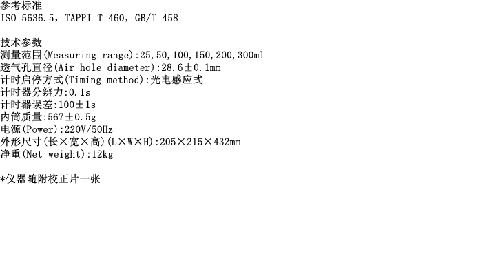 简介: 该仪器通过在均匀压力下一定体积的空气流过样品所需的时间来判定纸和薄膜的平均平滑度、透气度和柔软度。设备所带电子计时器在实验开始时会自动启动,当预定量的空气通过样品,计时器就会自动停止。