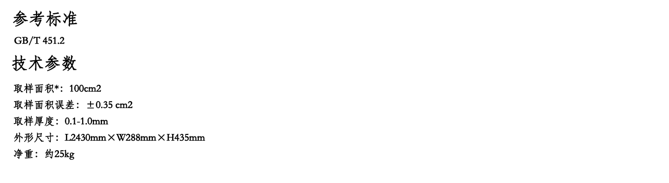 简介: T 005B定量取样器是纸张、纸板定量测定标准试样的专用取样器具,能快速、准确地切取标准面积的试样,是造纸、包装和质量监督检验等行业和部门理想的辅助试验器具。