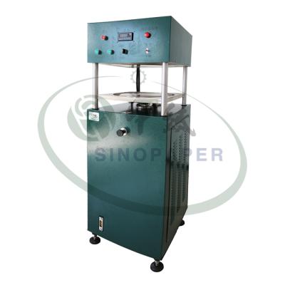 本气动式压榨机适用于方形片材的脱水和压榨。配有两个可调节定时器,可对纸页完成标准规定的两段压榨。本仪器在工作状态时,压力稳定,计时准确。施压时间可调节。工作时压力最大为16kN。最大纸张尺寸为330×350mm。