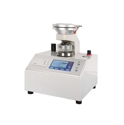 该设备采用气动夹盘夹持试样,能有效避免试验过程中的试样滑动。该设备由电机推动活塞,对液压系统加压,使样品下部的胶膜凸起,直至样品爆裂,并记录爆裂时的峰值,此峰值即为耐破裂强度。