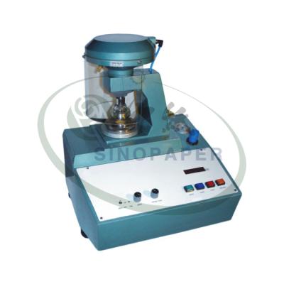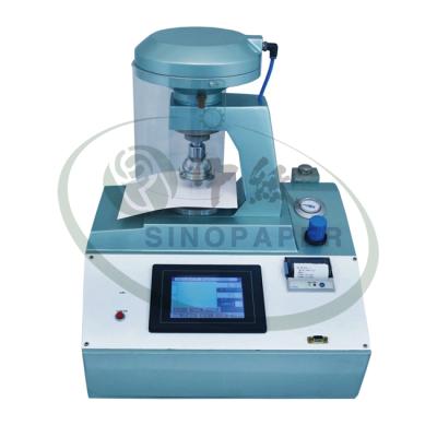 该设备按照Mullen原理,采用气动夹盘夹持试样,夹持力可调,能有效避免试验过程中的试样滑动。该设备由电机推动活塞,对液压系统加压,使样品下部的胶膜凸起,直至使样品爆裂,并记录爆裂时的峰值。此峰值即为耐破裂强度。